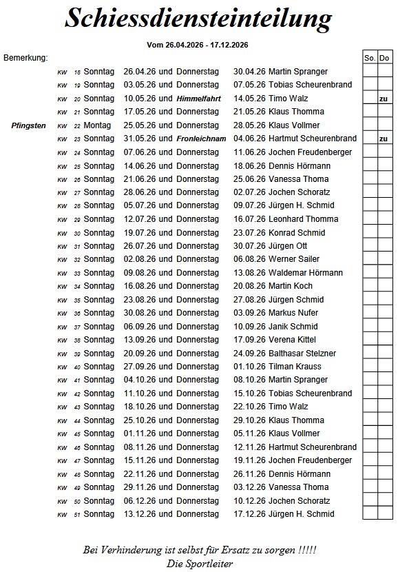 Die einzelnen Ergebnisse finden Sie bei den jeweiligen Schießsport-Sparten.